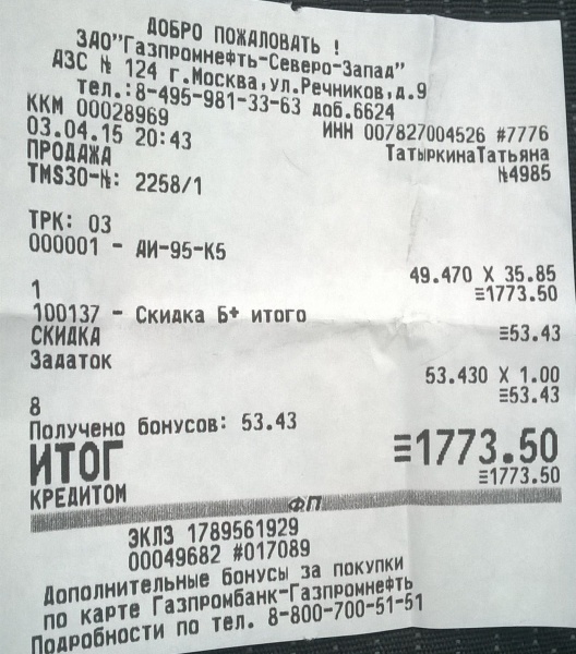Заправка Бензин (AИ-95) (Газпромнефть)