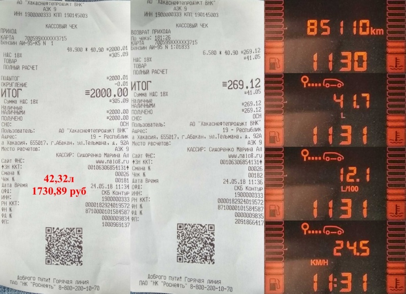 | Кол-во литров: | 42.32 (полный бак) | |