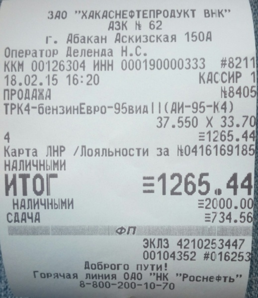 Заправка Бензин (AИ-95) (Роснефть)