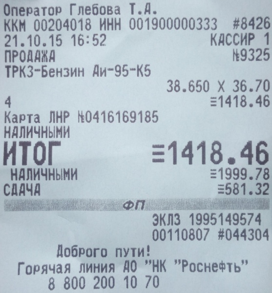 Заправка Бензин (AИ-95) (Роснефть)