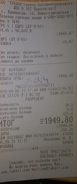 Заправка Дизельное топливо (Лукойл)